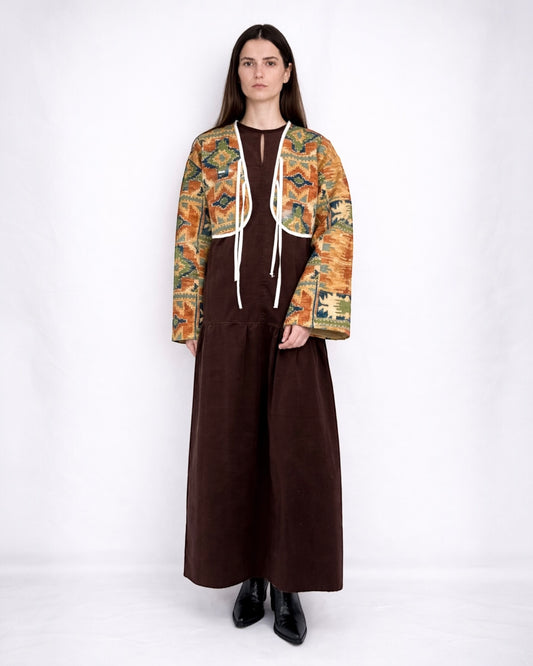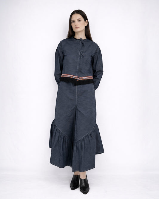 Tied Front Exaggerated Volume Maxi Dress in Blue