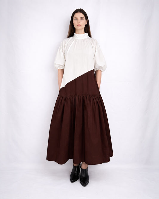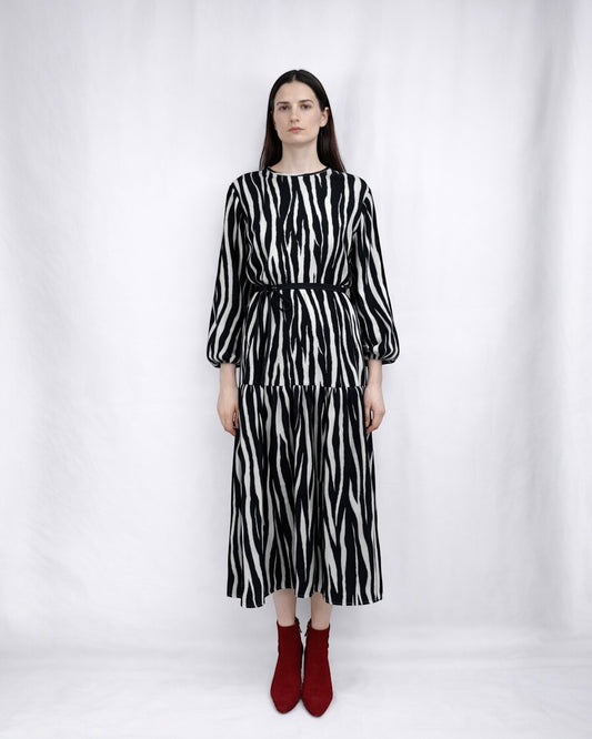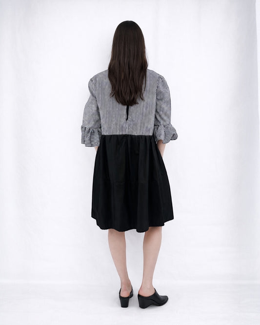 Tied Front Exaggerated Volume Maxi Dress in Black