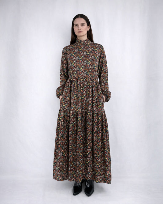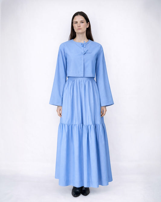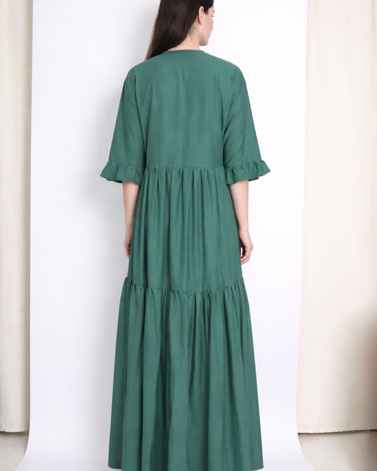 Tied Front Exaggerated Volume Maxi Dress in Green