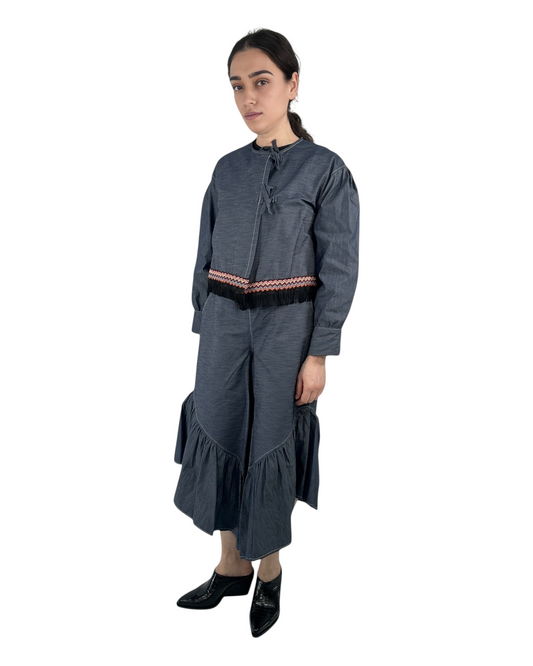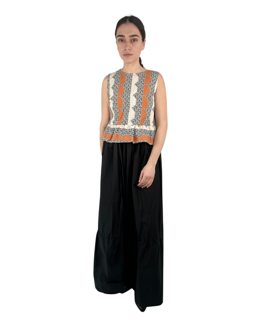 Tied Front Top & Exaggerated Volume Maxi Skirt Set
