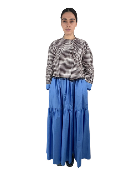 Tied Front Top & Exaggerated Volume Maxi Skirt Set