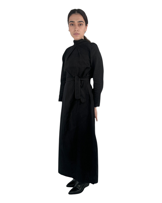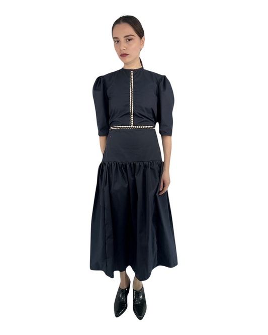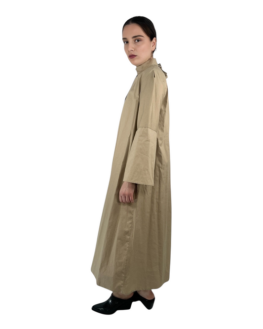 Trapeze Midi Dress with Stand Collar
