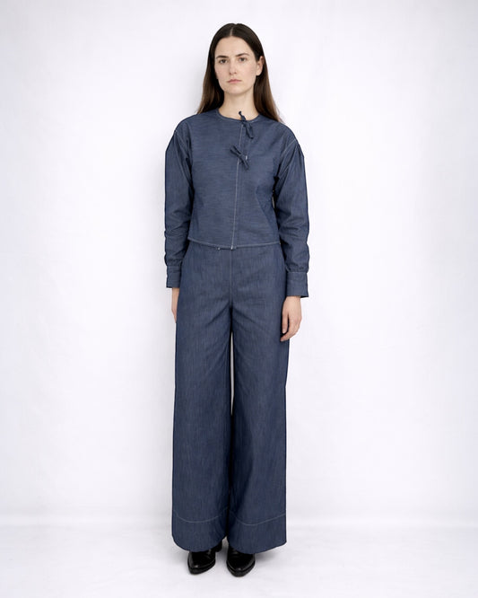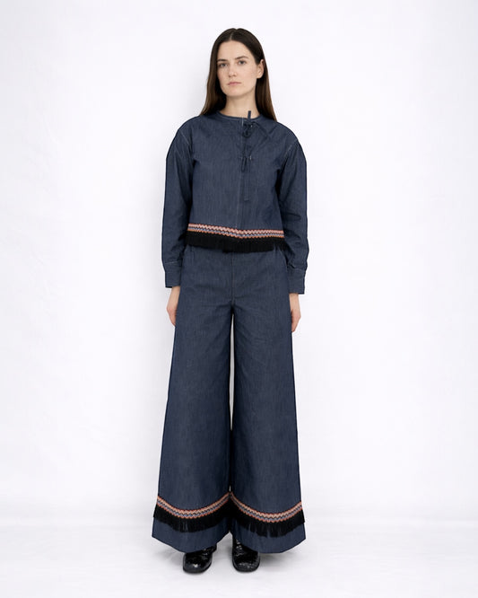 Tied Front Denim Top & High Waist Denim Trousers