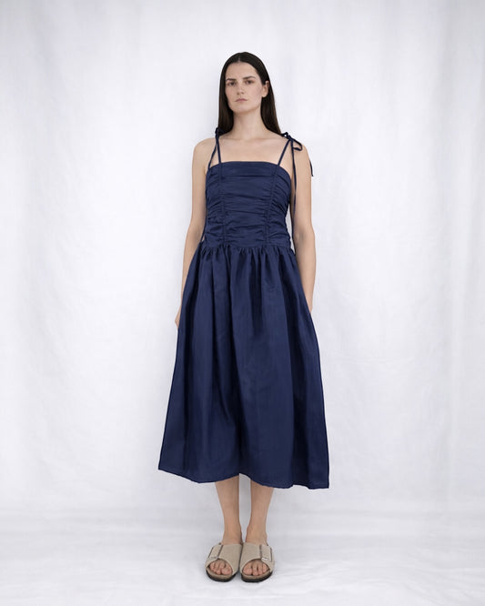 Mystic Moods Drop Waist Ruched Midi Dress