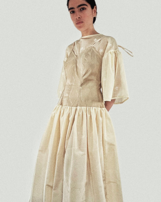 Mystic Moods Silk Moire Maxi with Puff Sleeves
