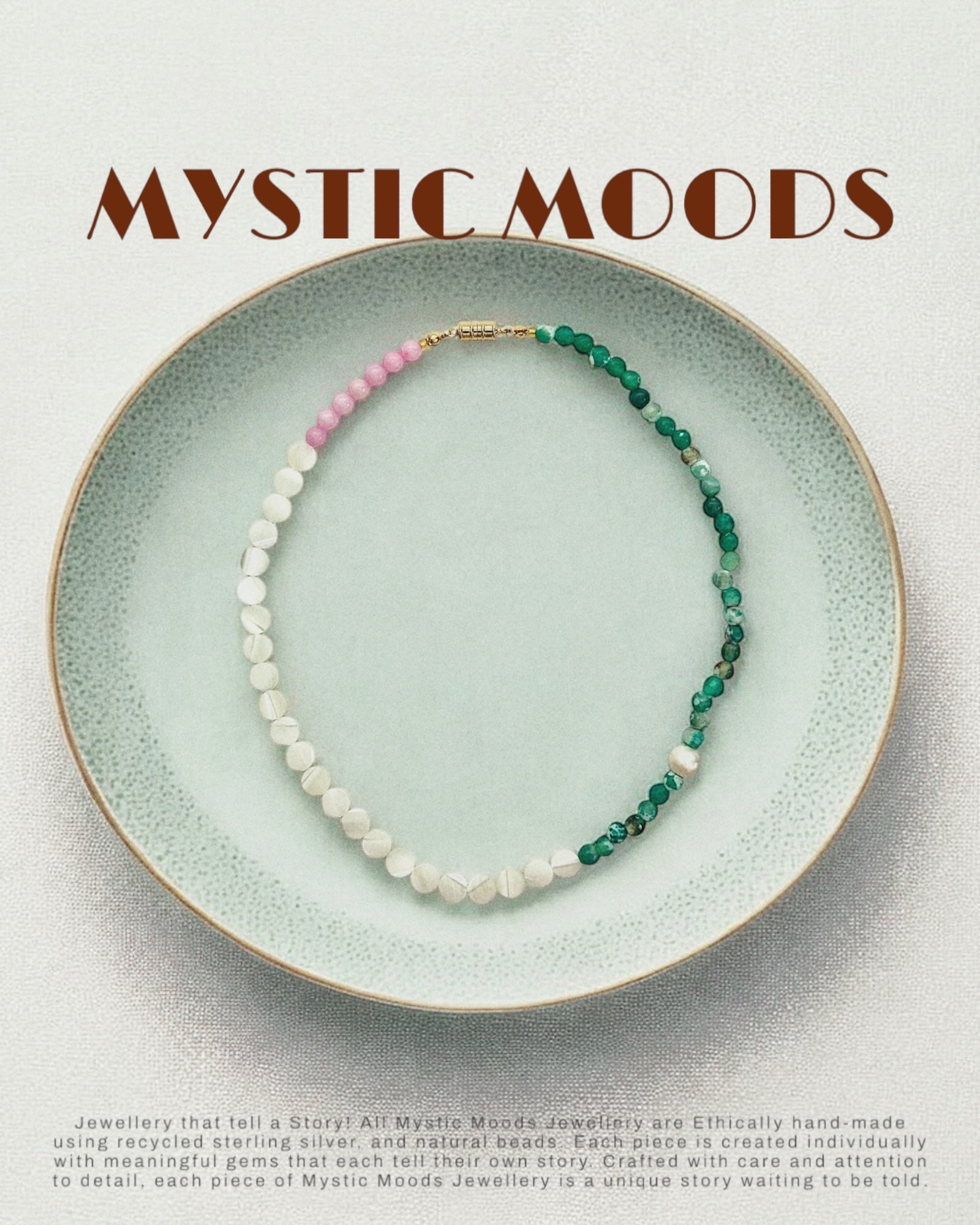 Our Mystic Moods jewellery is designed with intention — delicate pieces that honour craft, creativity, and conscious living. Each design is made in limited editions, using responsibly sourced and reclaimed materials wherever possible, ensuring beauty without compromise.