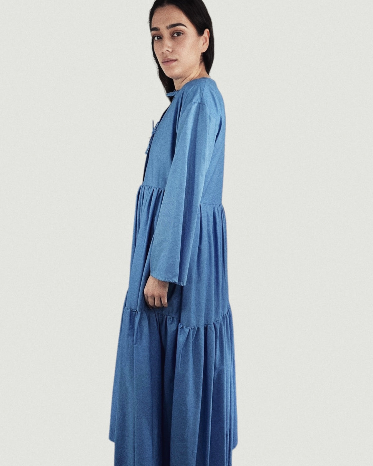 Tied Front Exaggerated Volume Maxi Dress in Blue