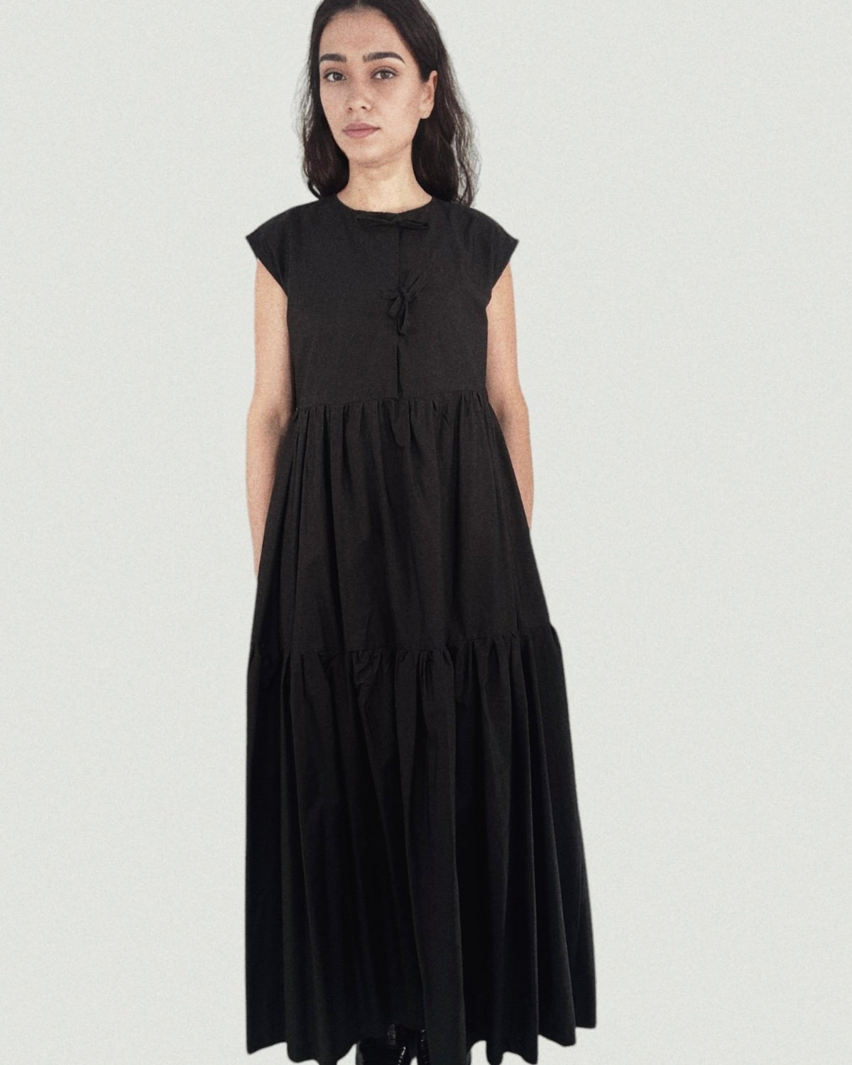 Tied Front Exaggerated Volume Maxi Dress in Black