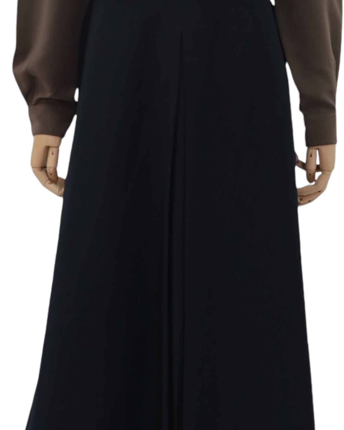 Vintage 100% new pure wool skirt featuring a pleated front with open slit, non functional buttoned welt pockets at the waist, back slit and zipper and button fastening at the back.